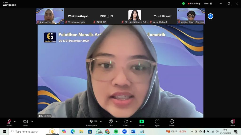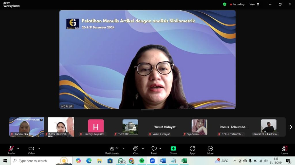 Pada tanggal 20-21 November 2024, telah diselenggarakan pelatihan bertajuk “Penulisan Artikel dengan Analisis Bibliometrik” yang bertujuan untuk meningkatkan kemampuan dosen dan peneliti dalam menulis artikel ilmiah berkualitas. Kegiatan ini diorganisasi oleh Admin Explore Gate dan dihadiri oleh peserta dari berbagai institusi pendidikan.